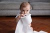Funny baby biting toilet paper roll by kids commercial photographer Lisa Tichané