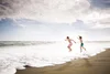 Children jumping in the waves at the beach by kids advertising photographer Lisa Tichané