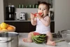 Baby eating watermelon in kitchen by kids commercial photographer Lisa Tichané